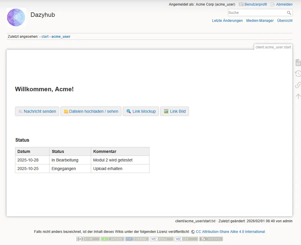 Dazyhub ermöglicht eine strukturierte und sichere Kommunikation, weil alle Inhalte klar dargestellt und leicht zugänglich sind. Kund:innen erhalten personalisierte Seiten, die alle wichtigen Projektinformationen übersichtlich bündeln.